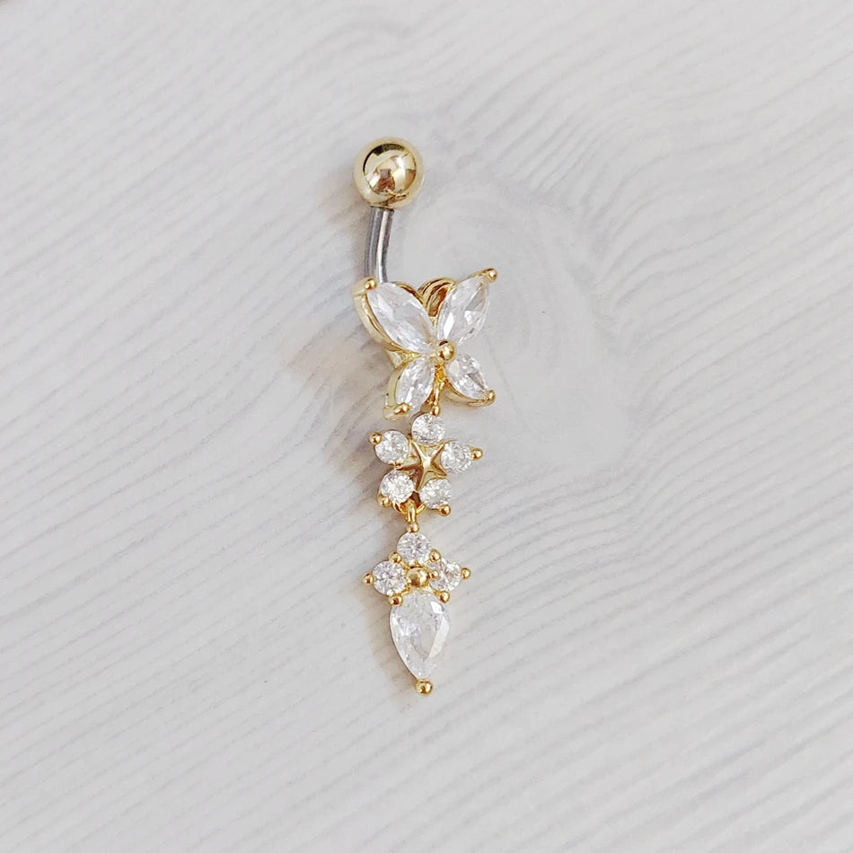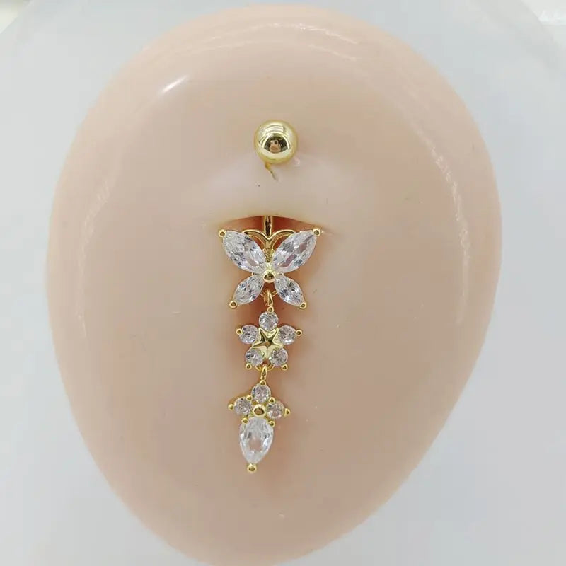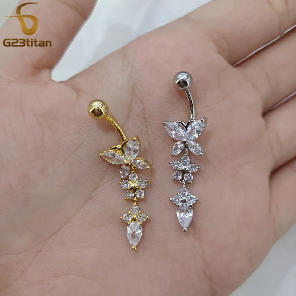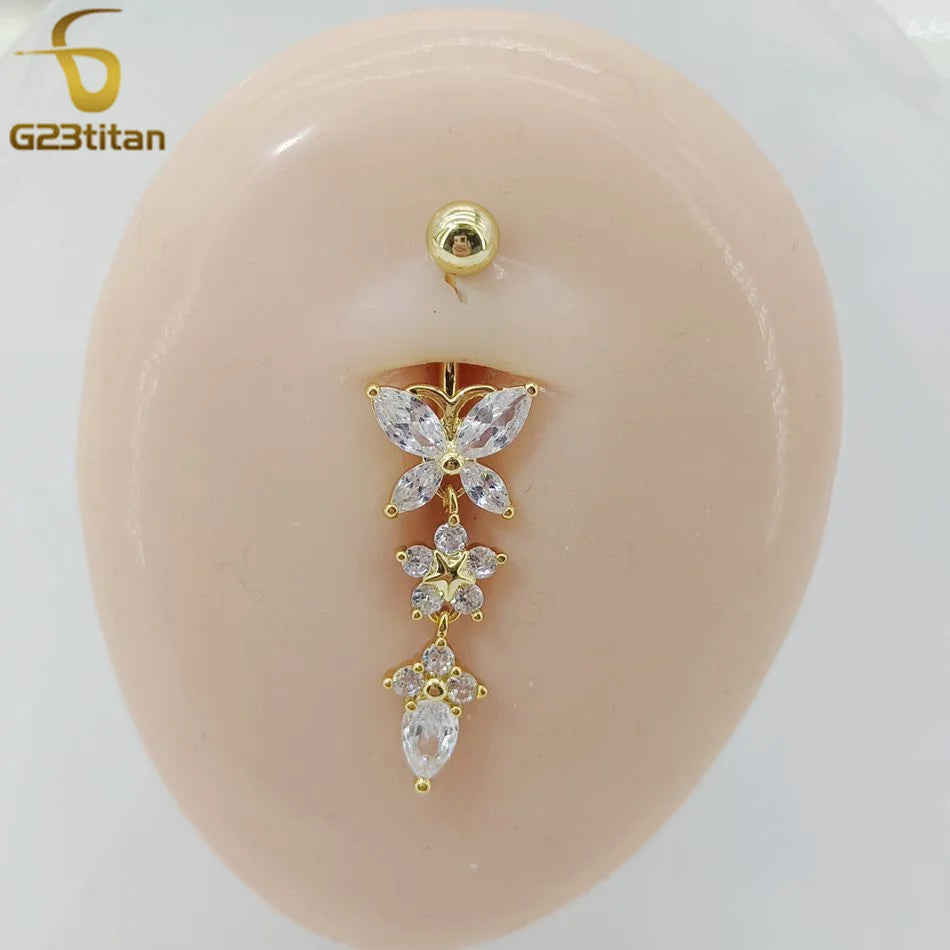 G23titan CZ Zircon Butterfly Dangle Belly Button Ring 14G Titanium Barbell Navel Bar Body Piercing Jewelry Women Sex Accessories