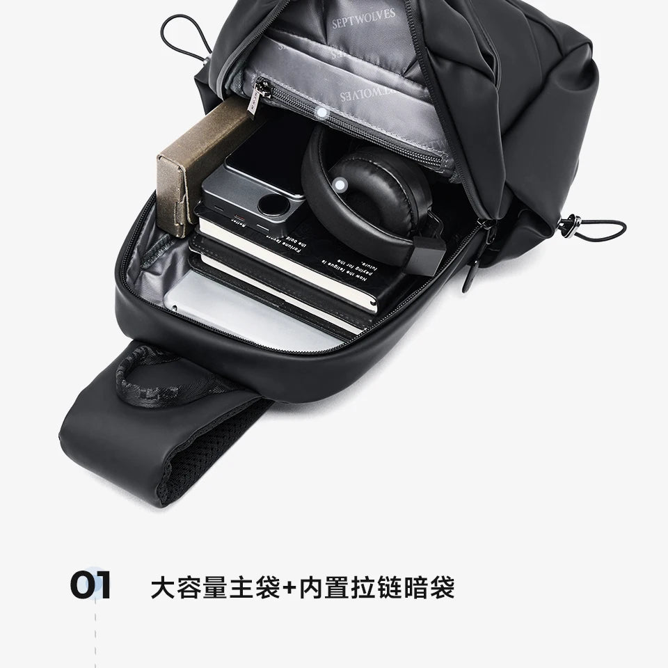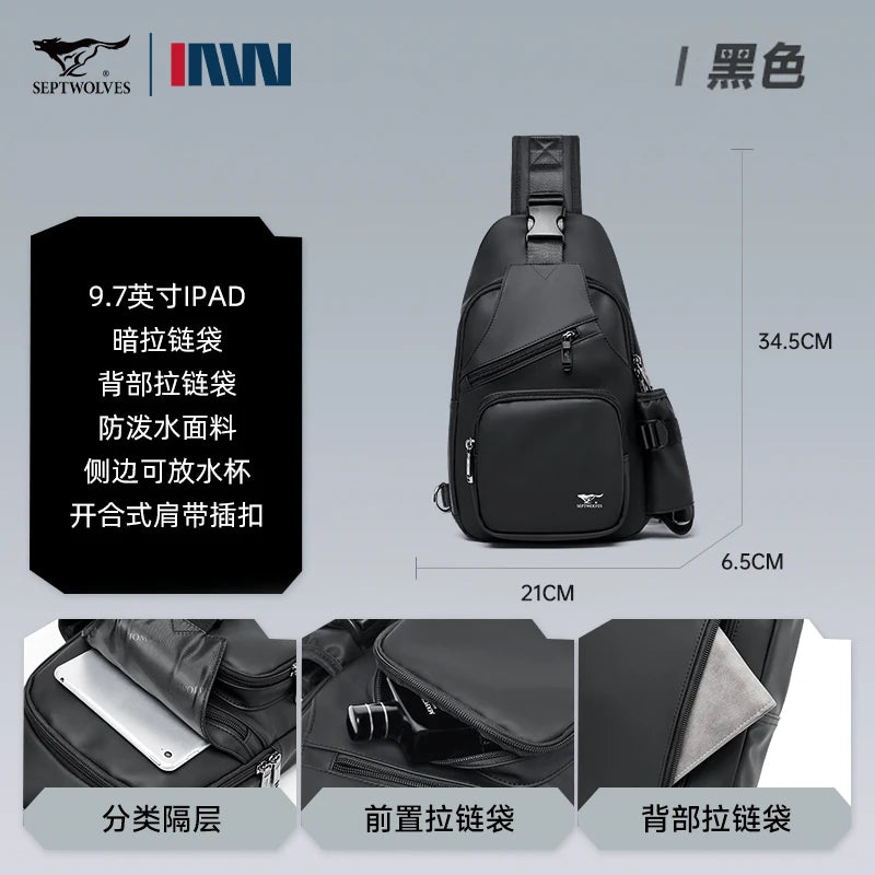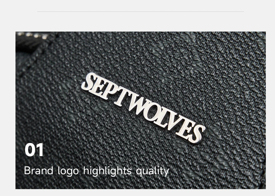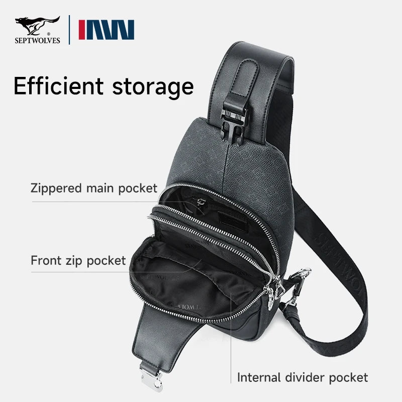 Septwolves negócios fino impresso couro crossbody sling saco homem moda casual viagem monograma impressão tecido ipad bolsa de ombro