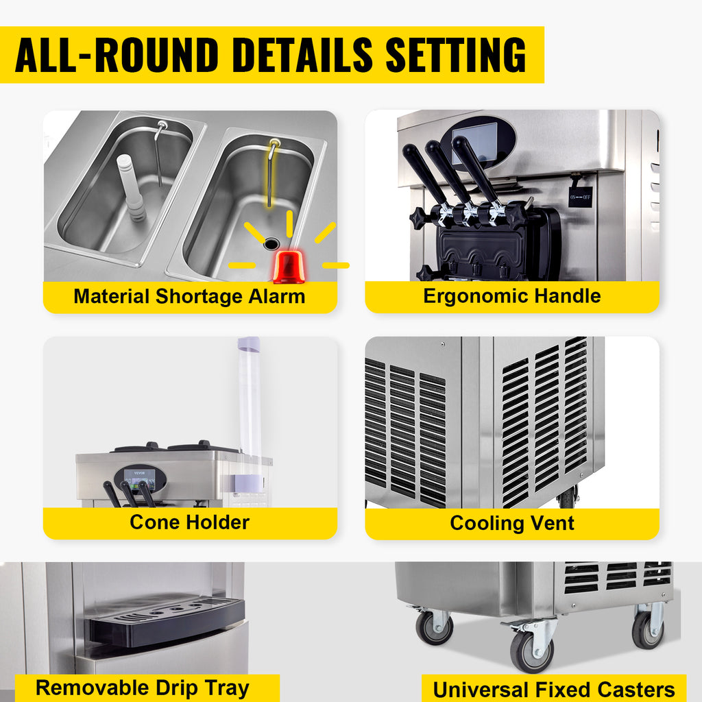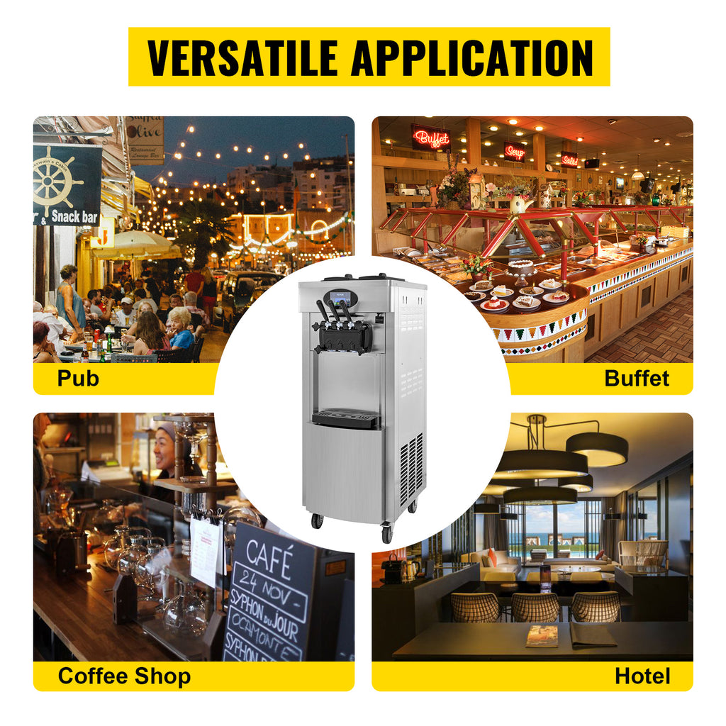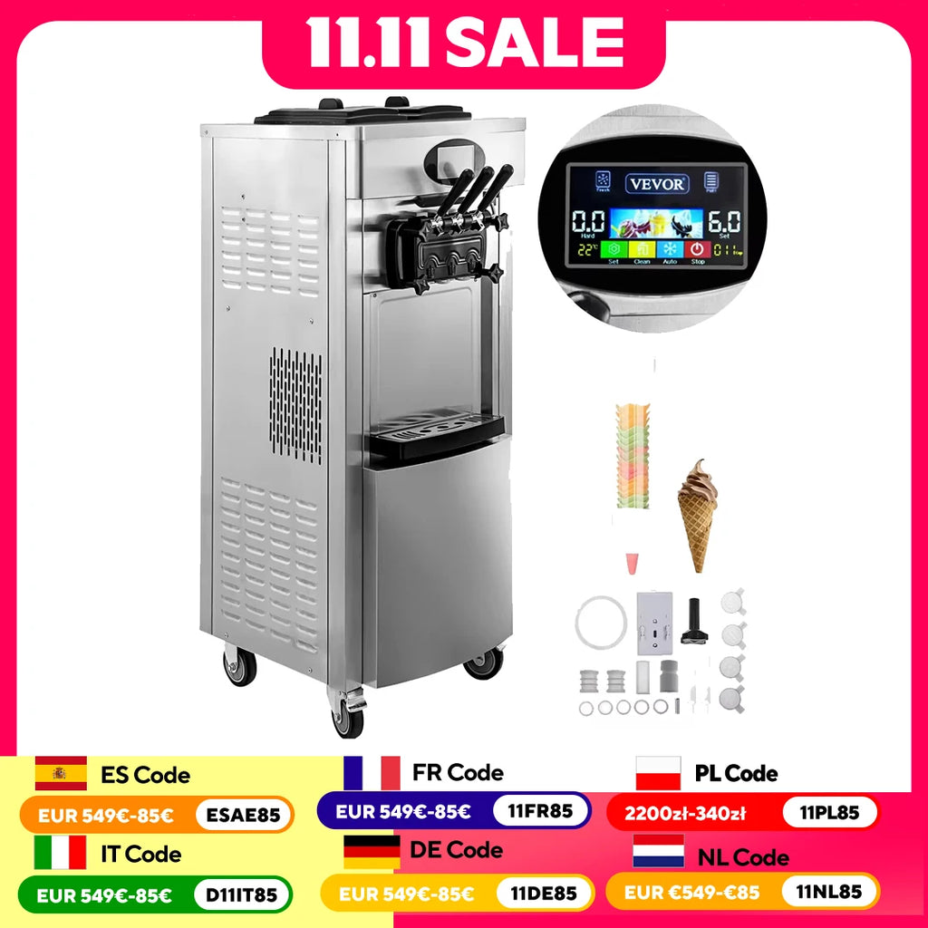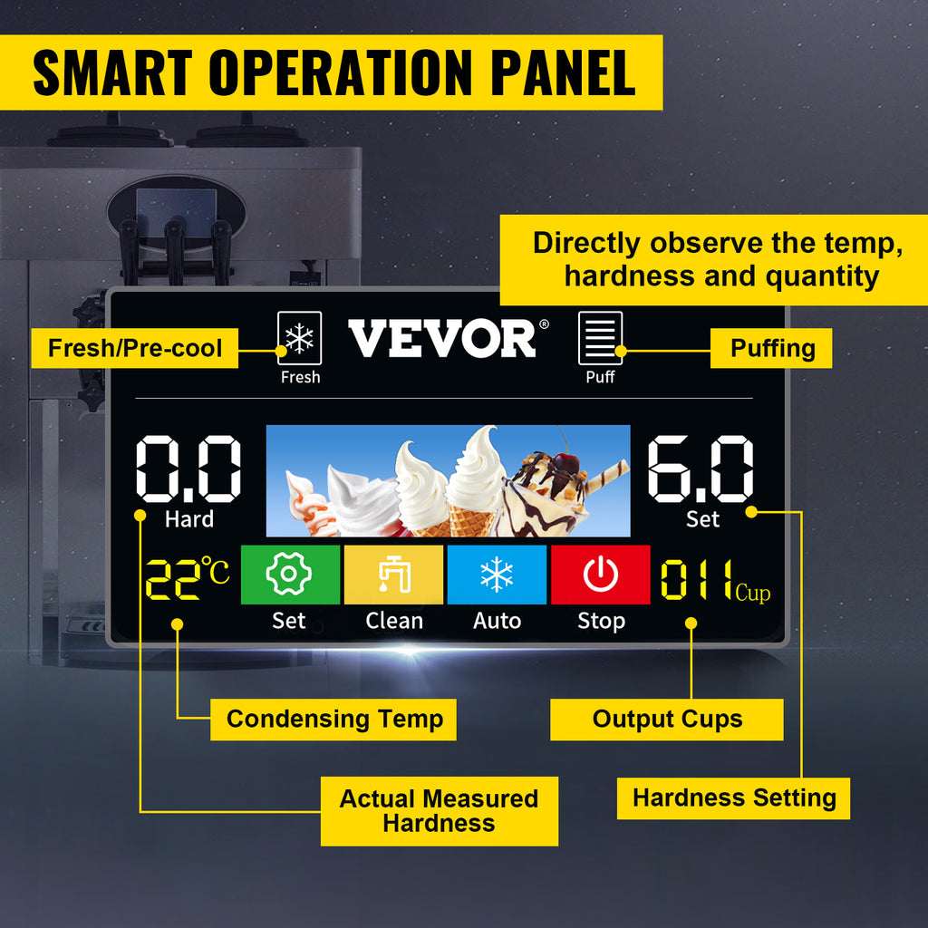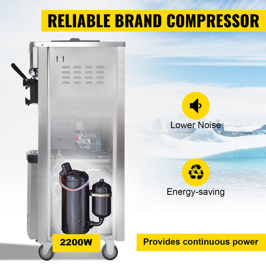 Máquina comercial de sorvete macio VEVOR - Hoppers duplos de 6L, 3 sabores, compressor de 2200W, controle LCD para bares, restauração