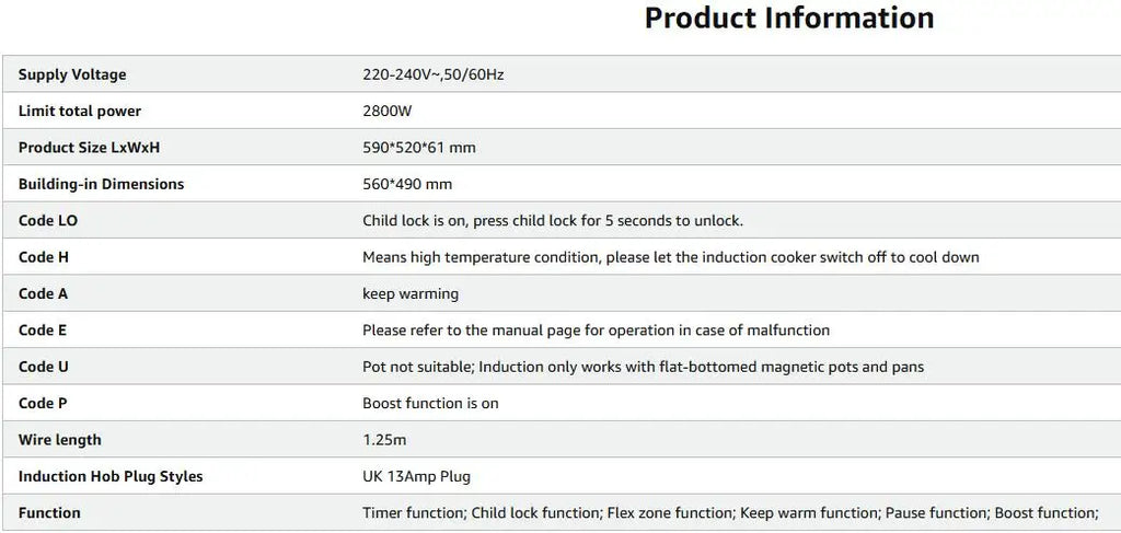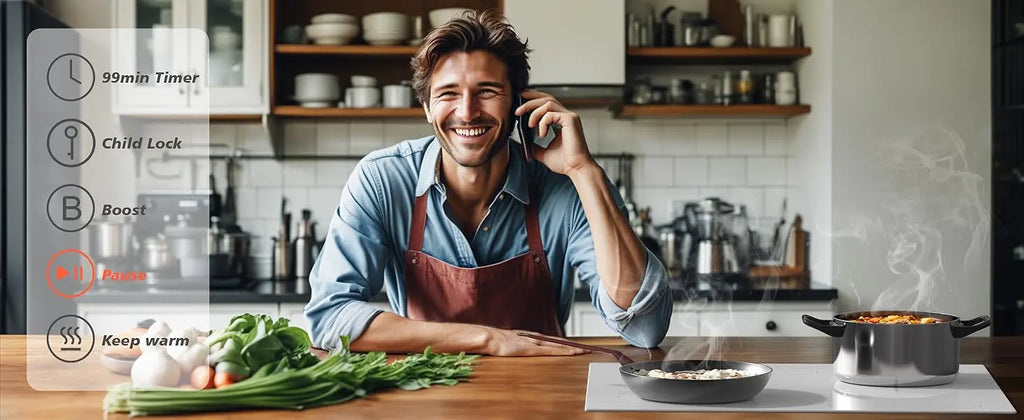 Placa de indução Karinear 4 zonas com plugue, 59CM, 3500W, vidro cerâmico branco, zonas combinadas, controles deslizantes, 9 níveis de potência