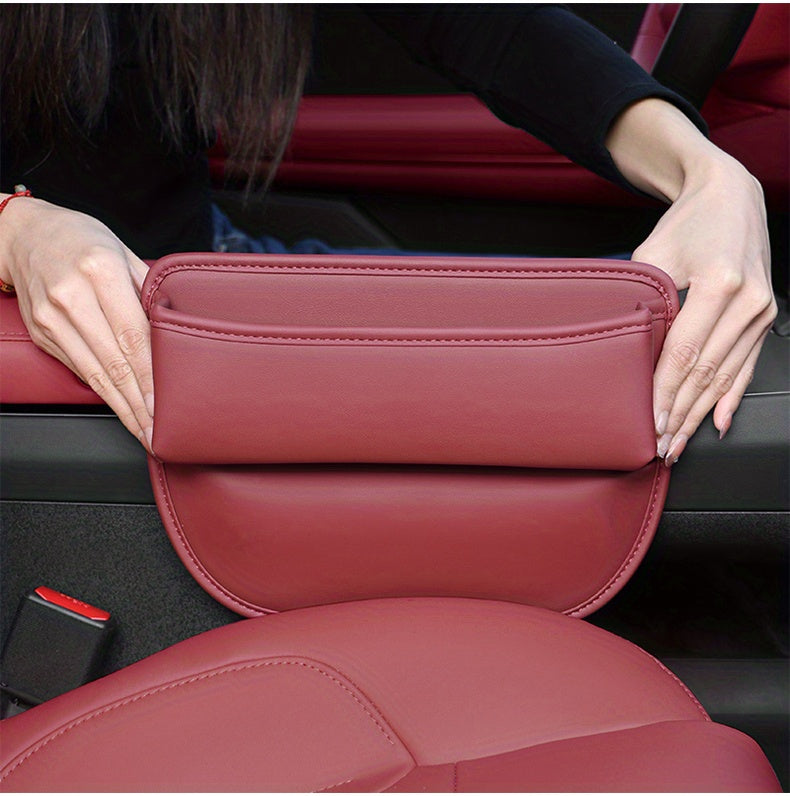 1pc Red PU Leather Car Seat Gap Organizer with Side Pockets & Charging Hole - Easy Install, Durable Console Storage Box for Smartphone, Wallet & Keys, Car Seat Organizer | Sleek Design | PU Leather Construction, Car Storage